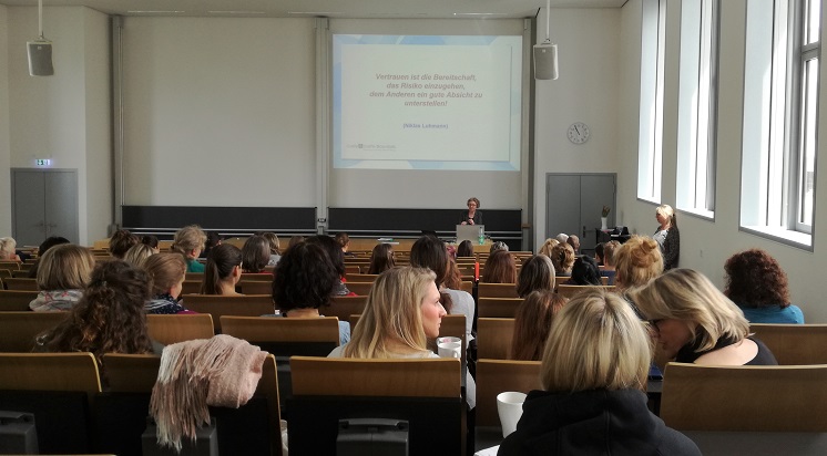 Nachdem die Netzwerktreffen von der Projektleitung eröffnet und thematisch eingeleitet wurden, stellte die Referentin Petrun Grafe (Rehabilitationspädagogin/Coach/Verfahrensbeistand) sehr eindrücklich, berührend und mit vielen Beispielen verknüpft das Konzept der beziehungsorientierten Autorität vor, bei dem es um „Stärke statt (Ohn-)Macht“ und erzieherische Präsenz geht. Frau Grafe erfüllte den Anspruch, die Potentiale dieses Konzepts der Sozialen Arbeit für die Elementarpädagogik auszuloten. Kerngedanke des Konzeptes ist es, einen beziehungsorientierten und gewaltfreien Weg erzieherischer Präsenz zwischen den gescheiterten Extremen „alter“ und „versagter“ (z.B. laissez faire) Autorität zu finden.