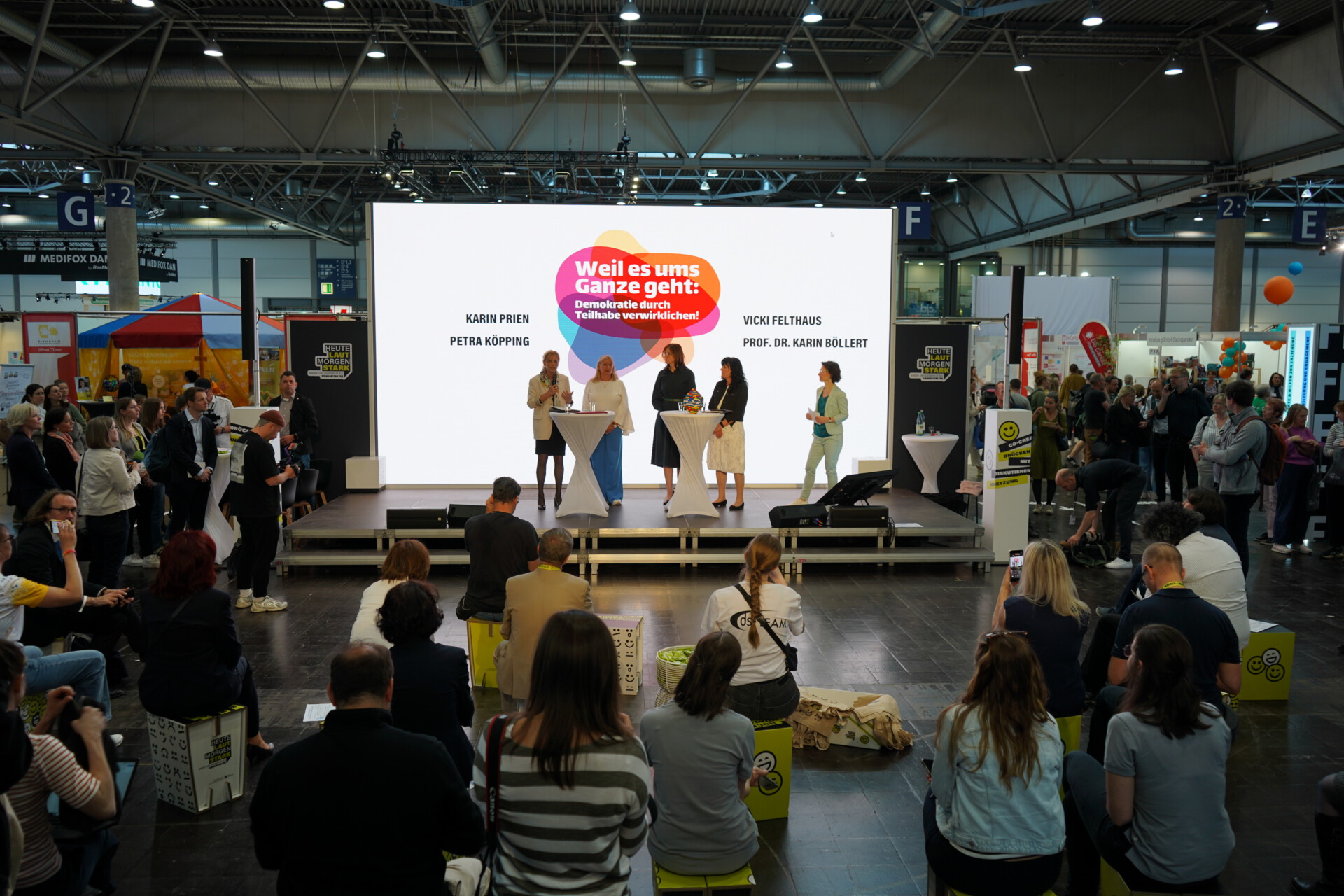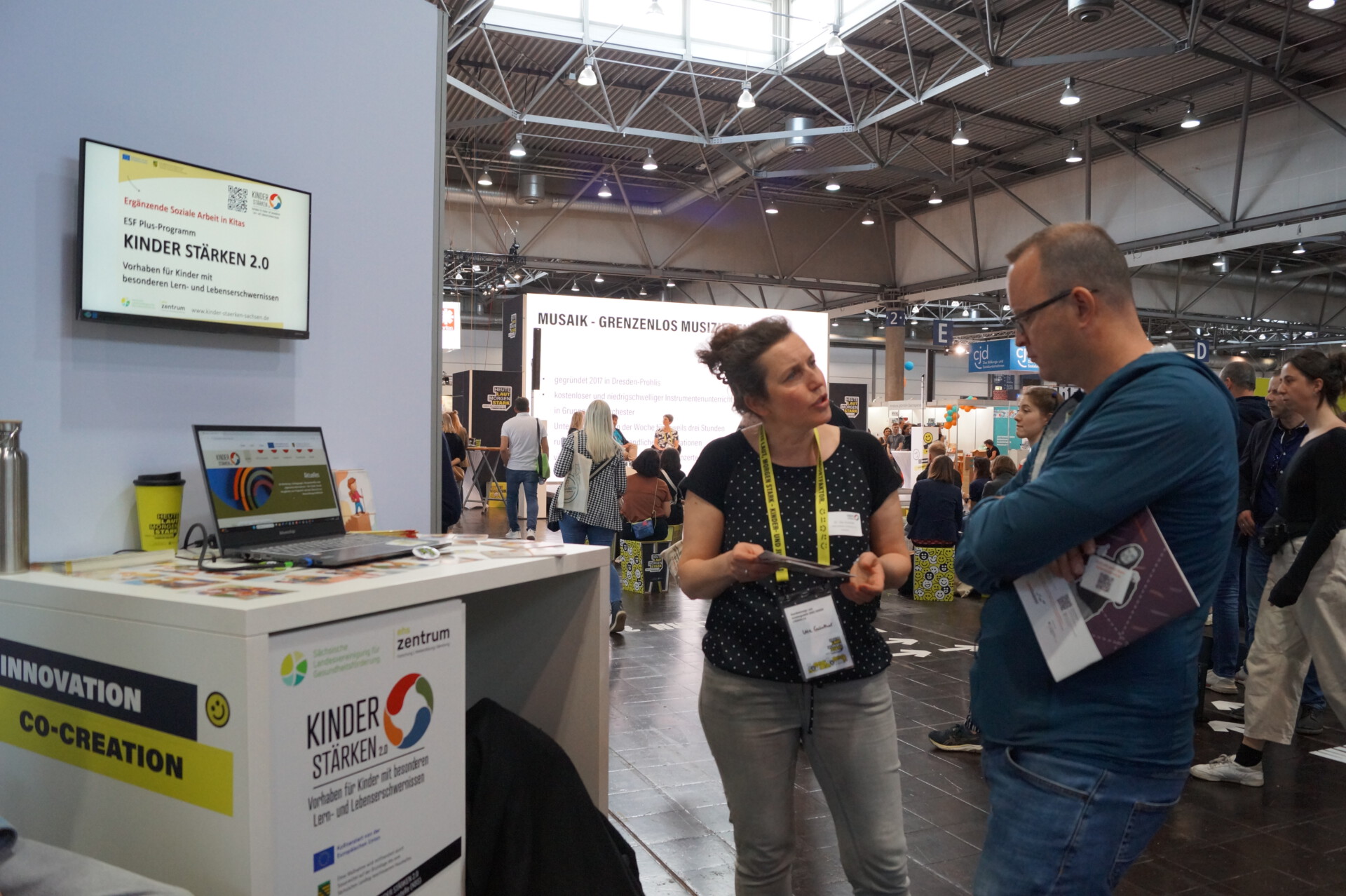 Dr. Ute Günther (1. v. l.) und Andreas Wiere (3. v. l.) von der KBS am Stand von KINDER STÄRKEN 2.0