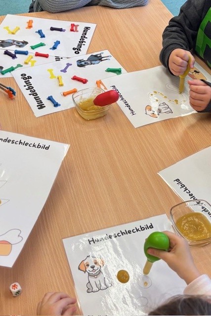 Die Hündin ist meist zweimal in der Woche in der Kita und ich setze sie gezielt in Kleingruppen mit maximal sechs Kindern ein. In enger Zusammenarbeit mit den pädagogischen Fachkräften werden die Kinder ausgewählt. Die Einsätze sind thematisch ausgerichtet und orientieren sich an den Ressourcen und Interessen der Kinder.