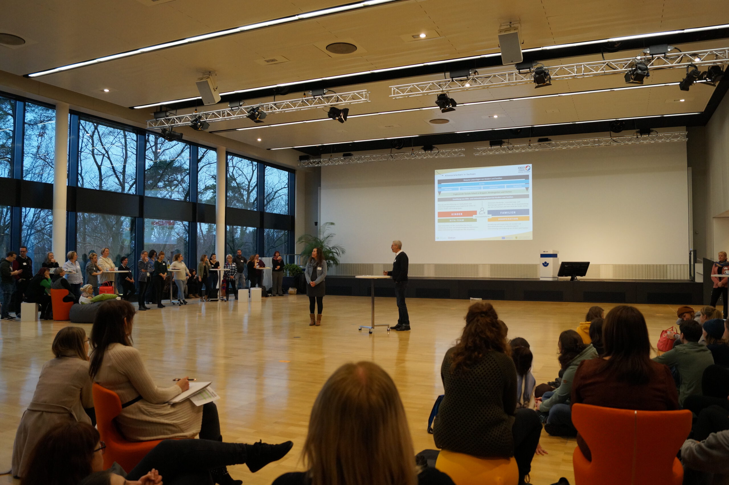 In ihrer Eröffnungsrede reflektierte die KBS-Projektleitung Dr. Ute Günther und Andreas Wiere darüber, welche Chancen Kitasozialarbeit im Programm KINDER STÄRKEN 2.0 hat und was mit den Grenzen gemeint sein könnte.