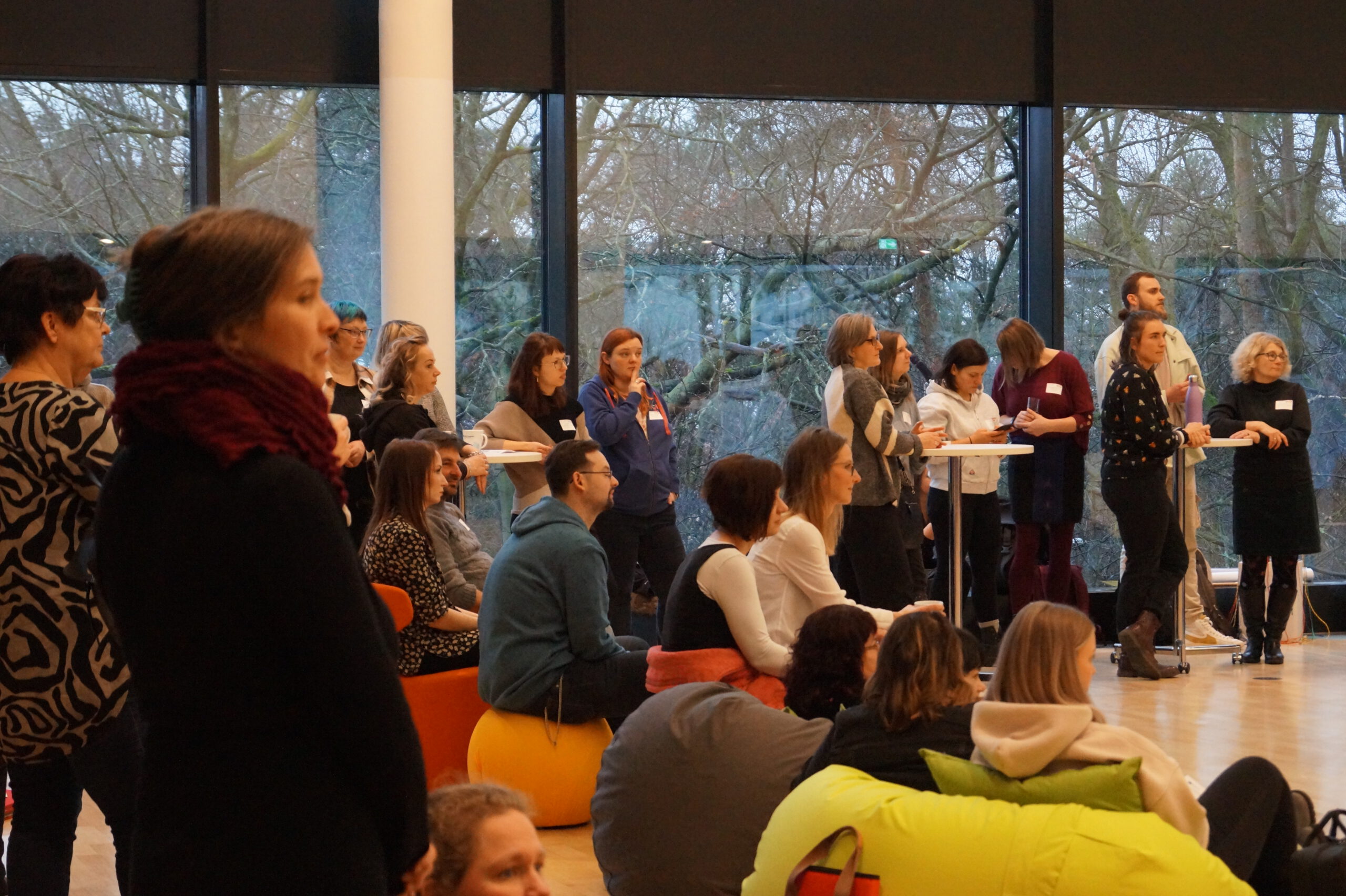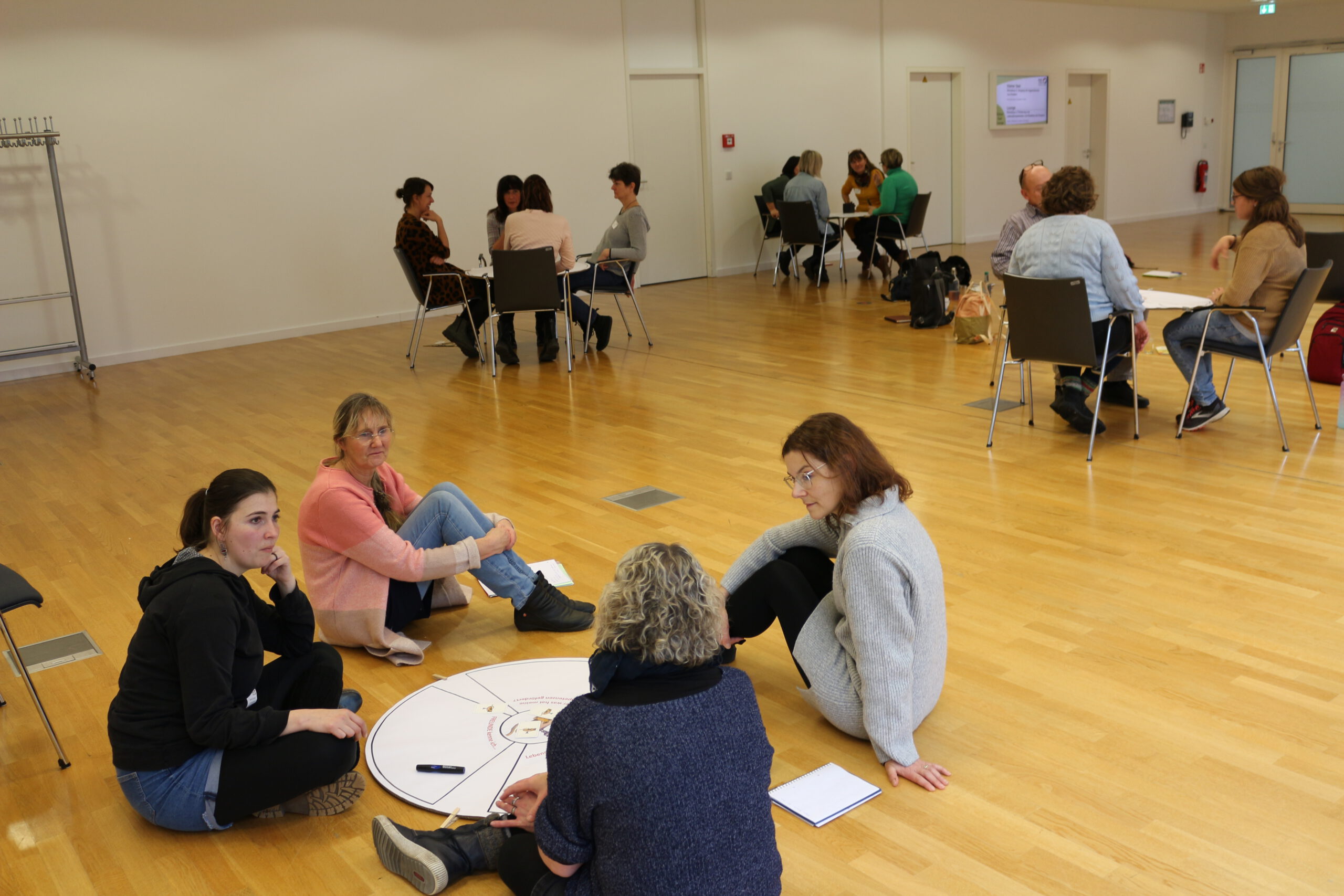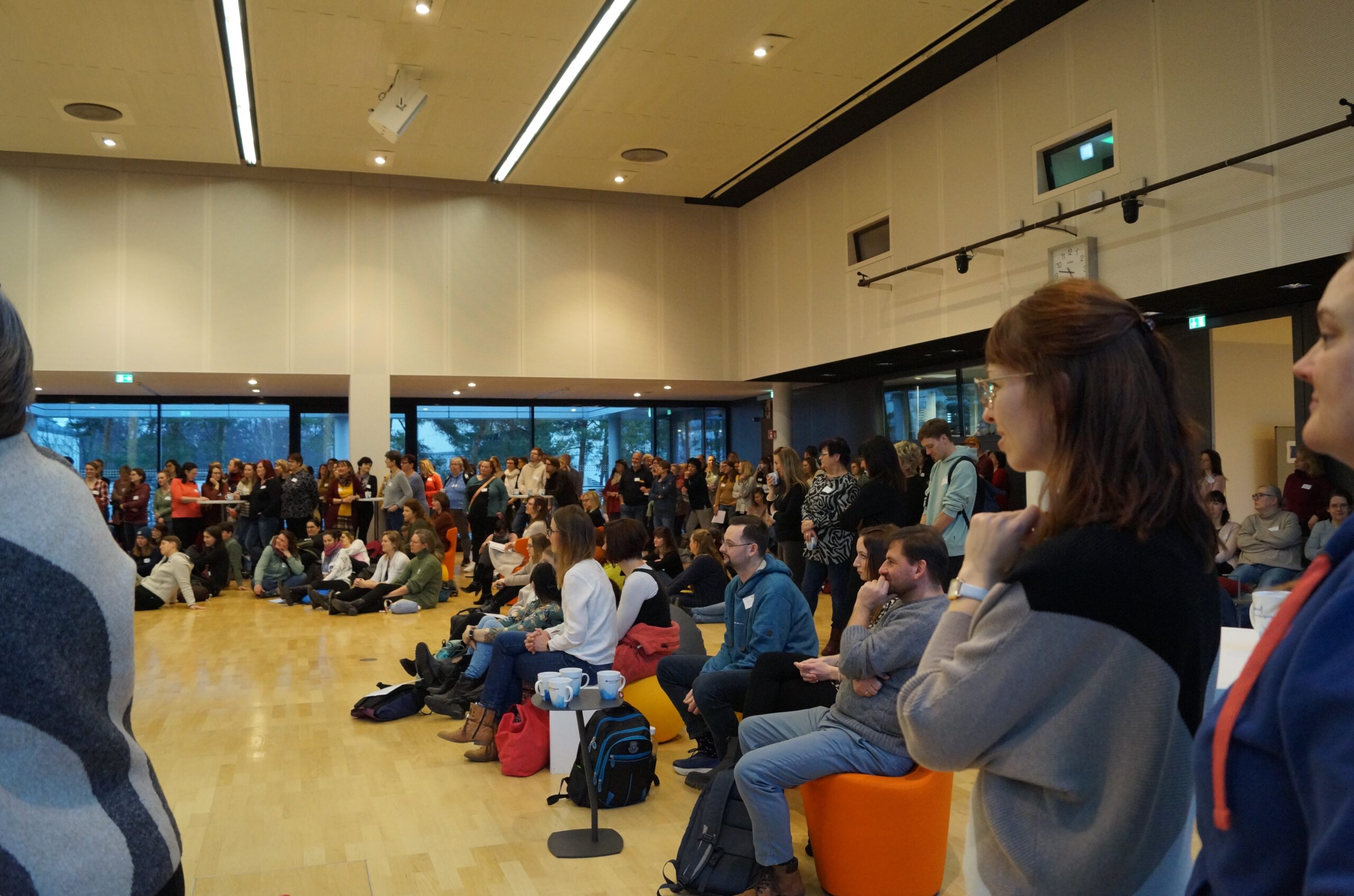 Nach dem interaktiven Einstieg fanden sich die Teilnehmenden zur ersten Workshoprunde ein. Mobile Trennwände und die Nutzung aller verfügbaren Räume auf den drei Ebenen im Tagungszentrum ermöglichten das vielfältige Workshop-Angebot an diesem Tag.