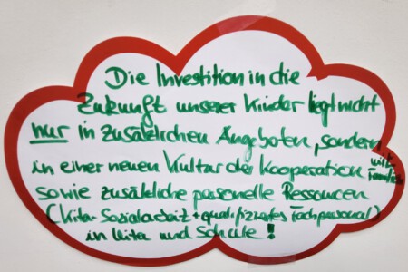 Diskussion über das Spannungsfeld zwischen Anspruch und Realität: Welche Unterstützung können zusätzliche Fachkräfte leisten? Wo liegen die Grenzen? Welche Rahmenbedingungen sichern nachhaltige Wirkung?