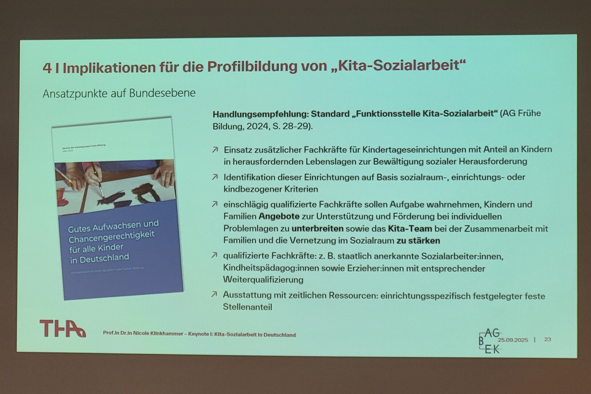 - Profilbildung ist entscheidend, damit Kita-Sozialarbeit nicht als bloßes Add-on missverstanden wird, sondern als eigenständige Fachlichkeit erkennbar bleibt.