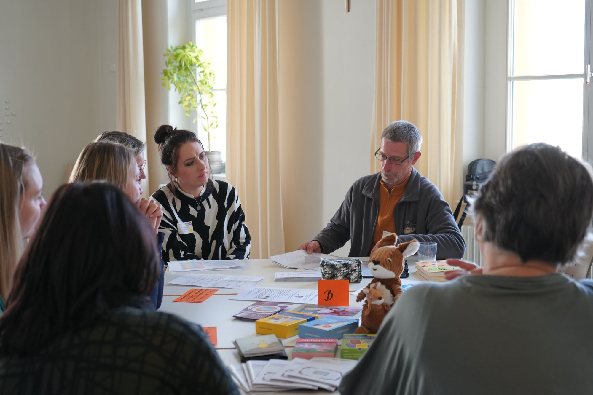 Nach der Begrüßung und Vorstellung des Ablaufs durch die Koordinierungs- und Beratungsstelle folgte mit dem Netzwerk-Bingo eine interaktive Methode zum gegenseitigen Kennenlernen und ersten Austausch: Alle Teilnehmenden bekamen einen Zettel mit 12 Aufgabenfeldern wie Finden Sie eine Person, die Weiterbildungen organisiert/ durchführt oder Finden Sie eine Person, die nicht täglich in einer Kita arbeitet. Wurde die entsprechende Person gefunden, wurde das Feld abgestrichen.