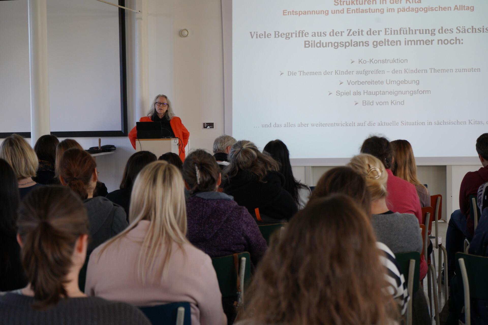 Ein besonderes Highlight war der Vortrag von Juliane Vogt zu Strukturen in der Kita – Entspannung und Entlastung im pädagogischen Alltag als Ausgangspunkt für den anschließenden fachlichen Austausch der Teilnehmenden.