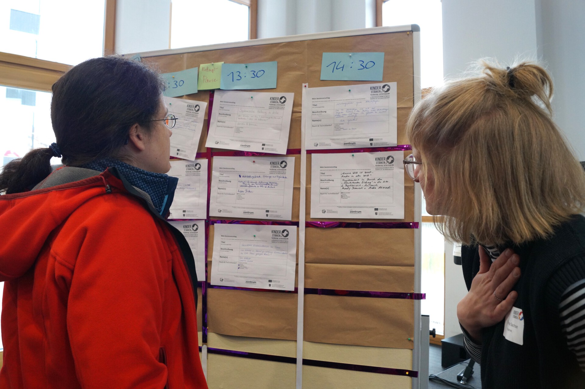Gemeinsame Planung: Am Session-Board werden die Themen der Fachkräfte verteilt.