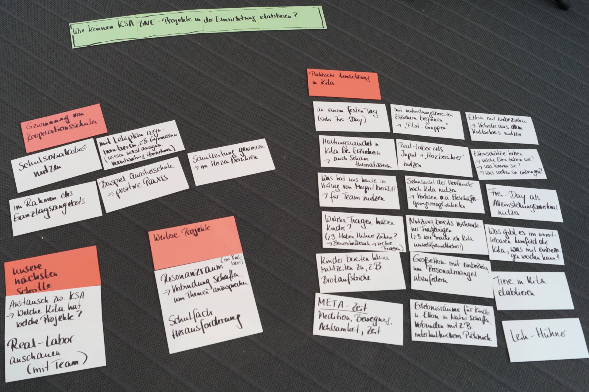 Aus ihren Erfahrungen und denen der Fachkräfte wurden praktische Umsetzungsideen für nachhaltige Angebote entwickelt. BNE bedeutet, Denken und Handeln ganzheitlich zu verändern. Ein erster Schritt könnte ein fester BNE-Tag pro Woche sein, der FREI Day in der Kita. Wichtig dabei: Die frühzeitige Einbindung des Teams und Aufbau eines unterstützenden Netzwerks.