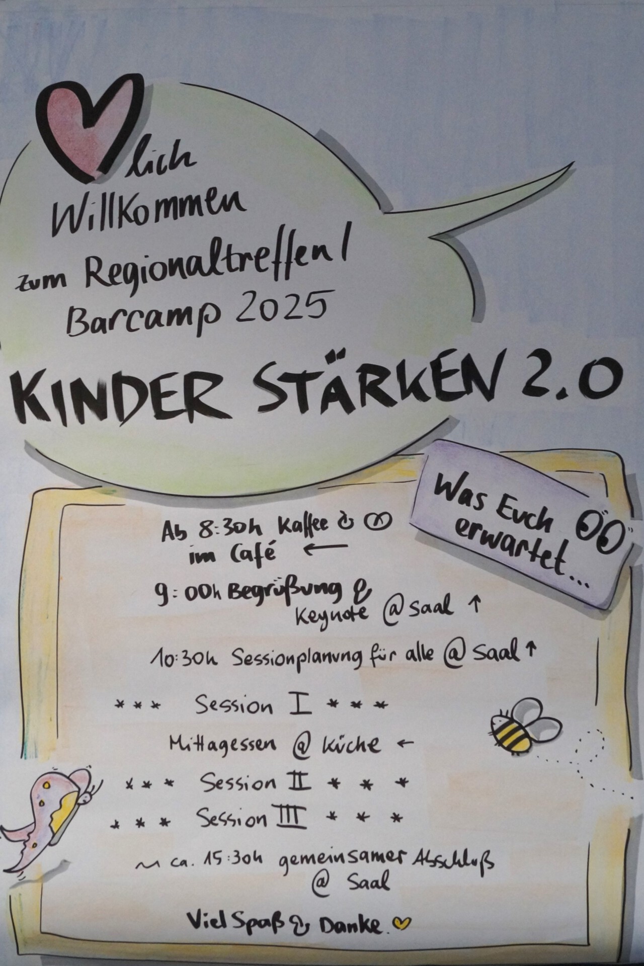 Zum Abschluss machte sie allen Mut: „Die Kinder sind schon da! Jetzt liegt es an uns, ihnen die Räume zu geben, die sie brauchen.“ Mit diesen Worten leitete sie in die weitere Planung des Barcamps über.