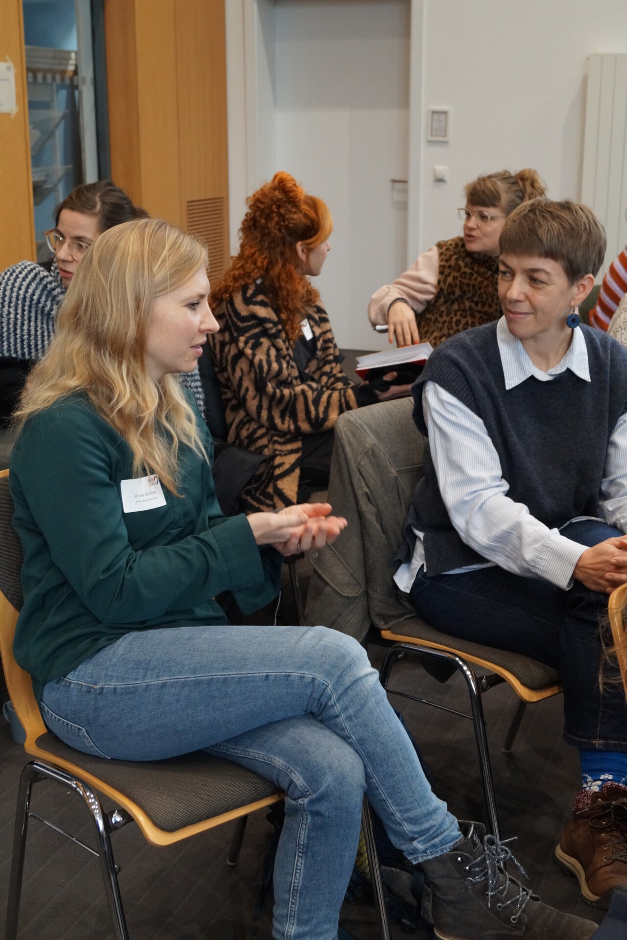 Die zusätzlichen Fachkräfte in den Kitas sind neben den pädagogischen Fachkräften Teil des Teams. Zwei Fachkräfte moderierten diese Session, die auf der Erkenntnis basierte, dass Aussagen oft viel Raum für Missverständnisse lassen: Was ist ein Gefühl? Was ist ein Bedürfnis? Hier kann es helfen, klare Aussagen zu treffen, wie zum Beispiel: „Ich brauche jetzt 10 Minuten Pause, um weiter mit den Kindern zu arbeiten.“ Auch Code-Wörter zwischen den Fachkräften können die Kommunikation erleichtern. Alle stimmten überein, dass die Verbesserung der Team-Kommunikation ein fortlaufender Prozess ist. Fachkräfte berichteten von unterstützender Supervision und Team-Tagen. In den Kitas der Stadt Leipzig gibt es eine Team-Verpflichtung, die einen gemeinsamen Kurs vorgibt.